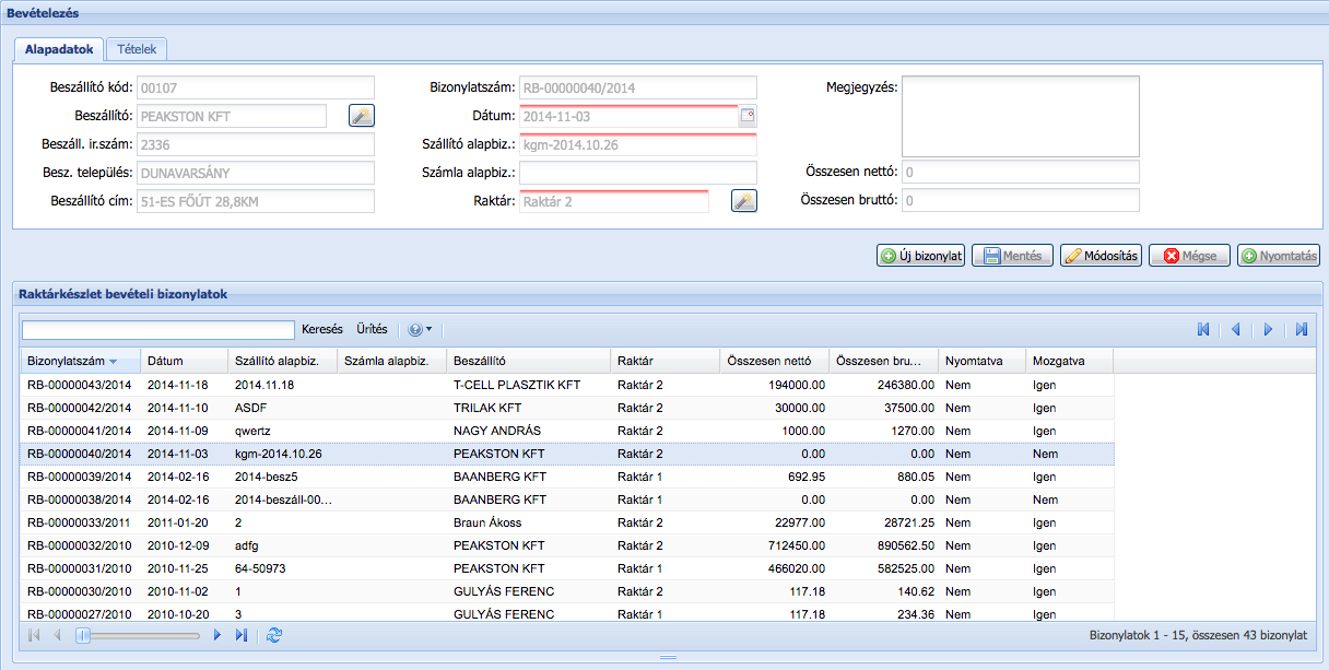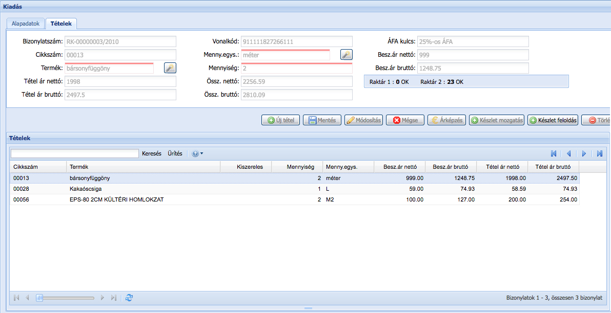 Raktárkészlet kezelés, Árképzés, Partner-kezelés, Árajánlat készítés, Megrendelés-kezelés, Számla, Szállítólevél